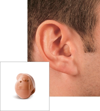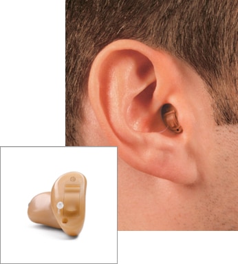 This hearing aid is placed in the ear canal and is the smallest available. It takes advantage of the ear’s natural ability to collect sound, and its discreet size makes the device virtually invisible to others.